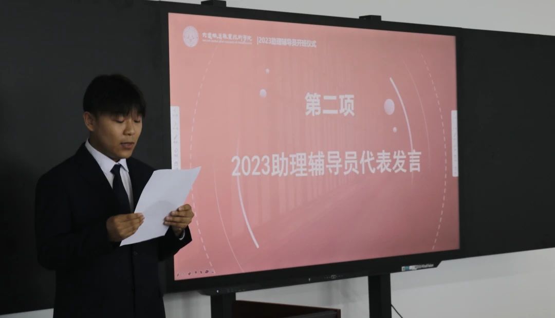 ▲Zhang Heng, representative of assistant counselors, delivered a speech.