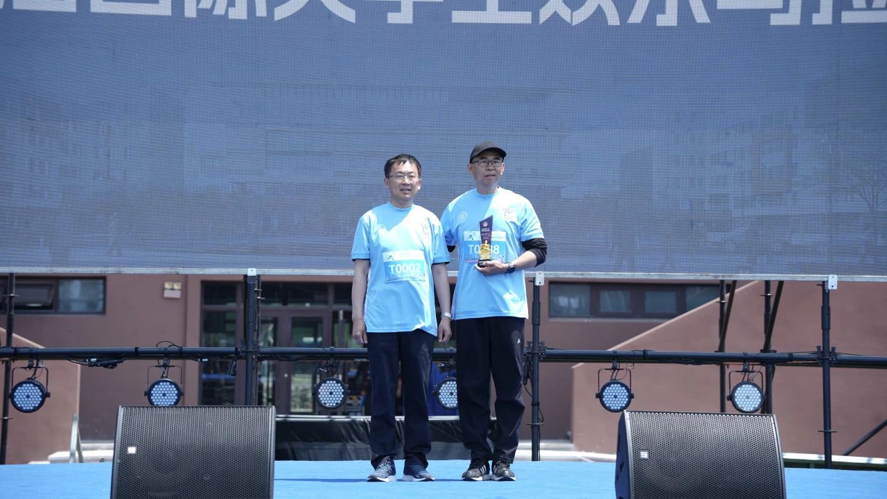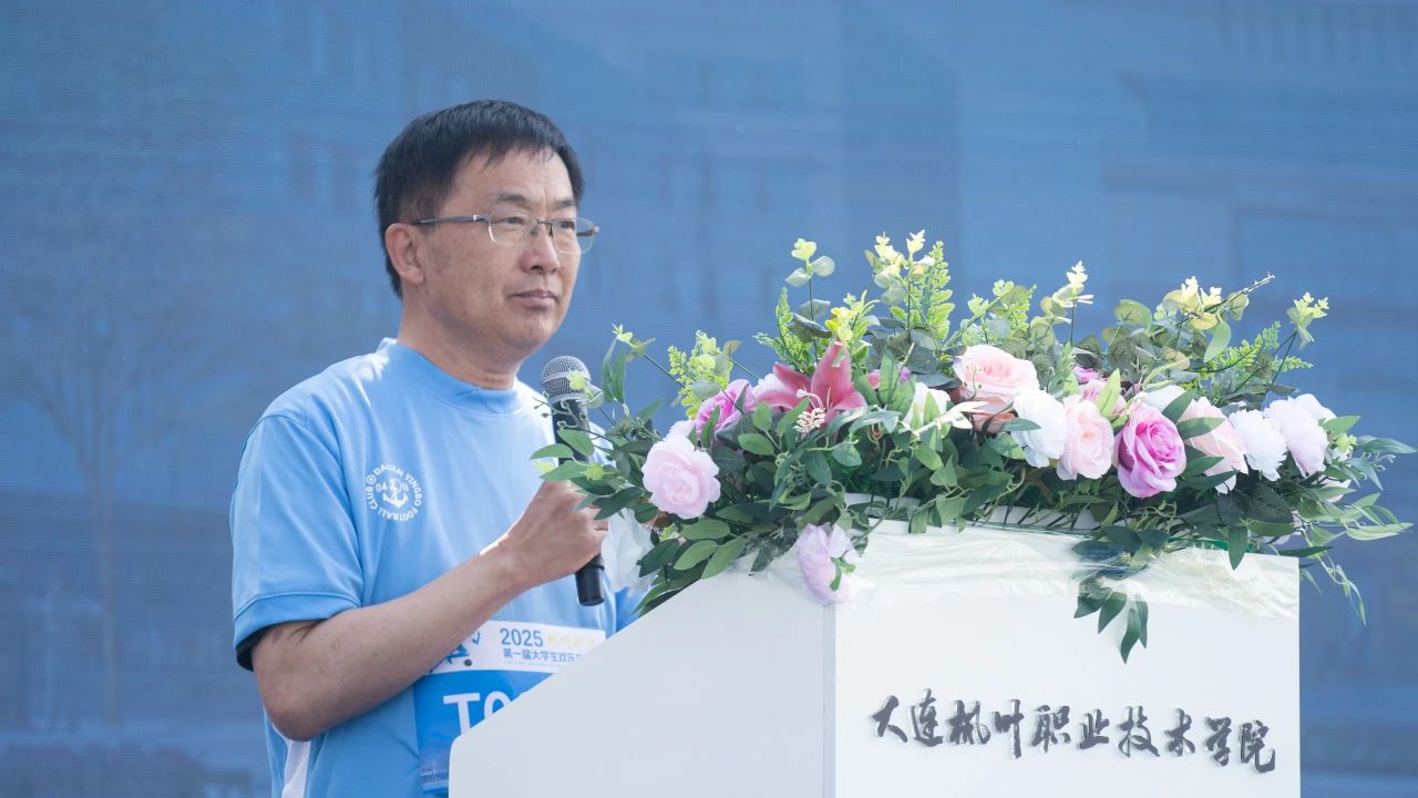 Yang Jie, Secretary of the College Party Committee and President, presented a trophy to the exclusive sponsor of the event, expressing gratitude to Mr. Zhou Shuncheng, founder of Chaofan Education and President of Dalian Chaofan Training School, for his strong support of this activity. In his speech, Principal Zhou delivered a heartfelt message in both Chinese and English: "May you all always run joyfully on the journey of life until your dreams are reached."