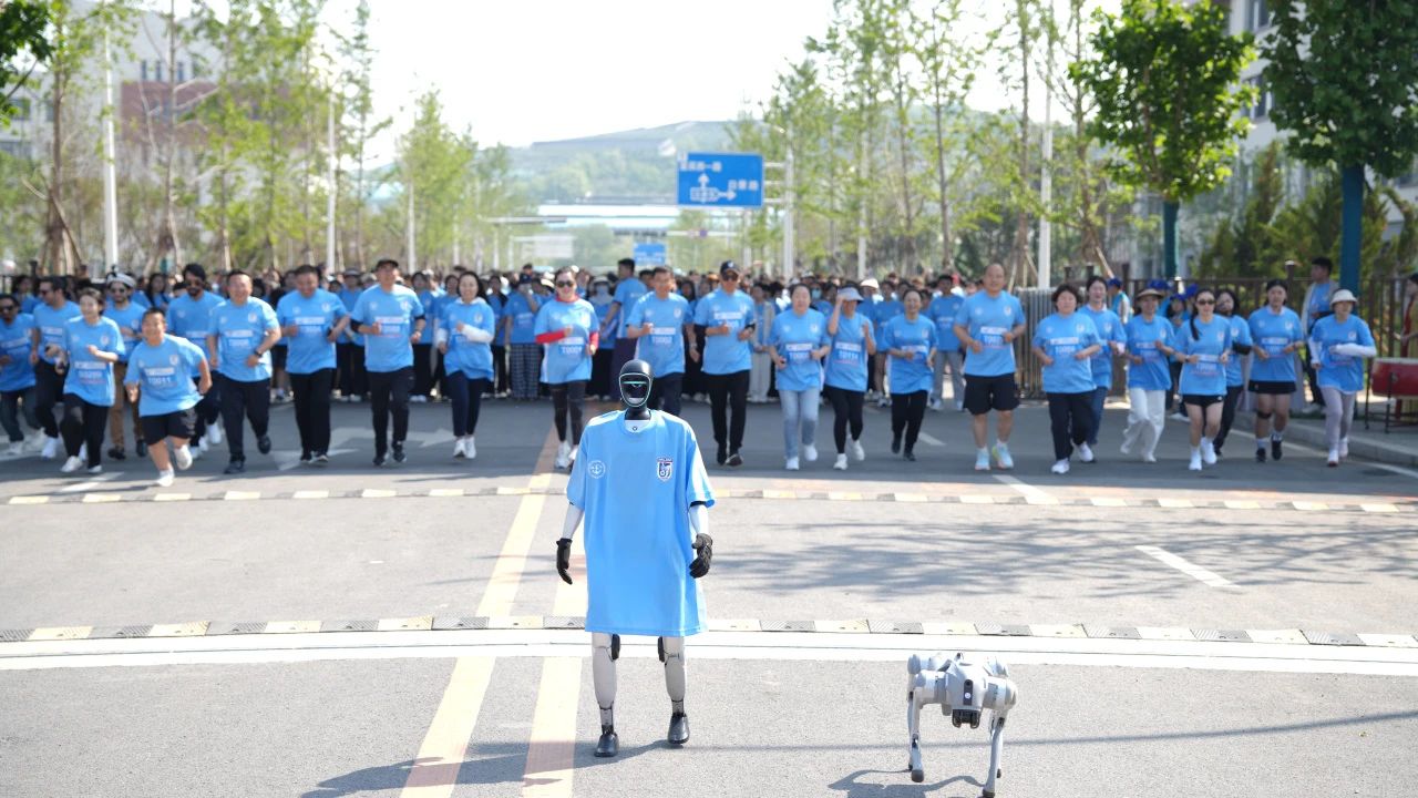 As the starting gun fired, robots and robotic dogs took the lead, followed by Yang Ping, Chairperson of the College Board, and Yang Jie, Secretary of the College Party Committee and President, who led the participating faculty and students onto the track.